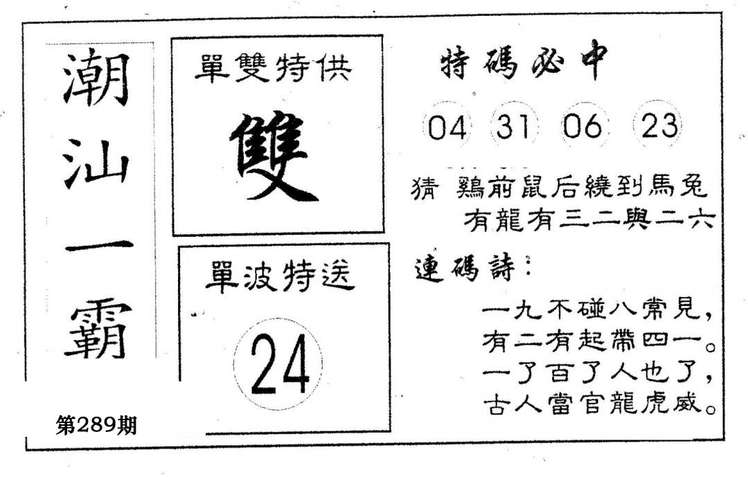 101 招财皇 102 新龙报 103 曾女士诗 104 仙脚印