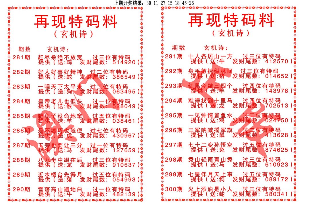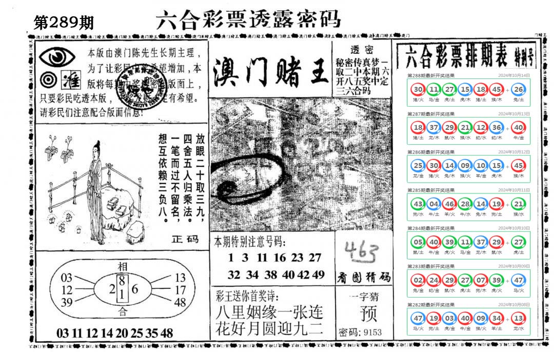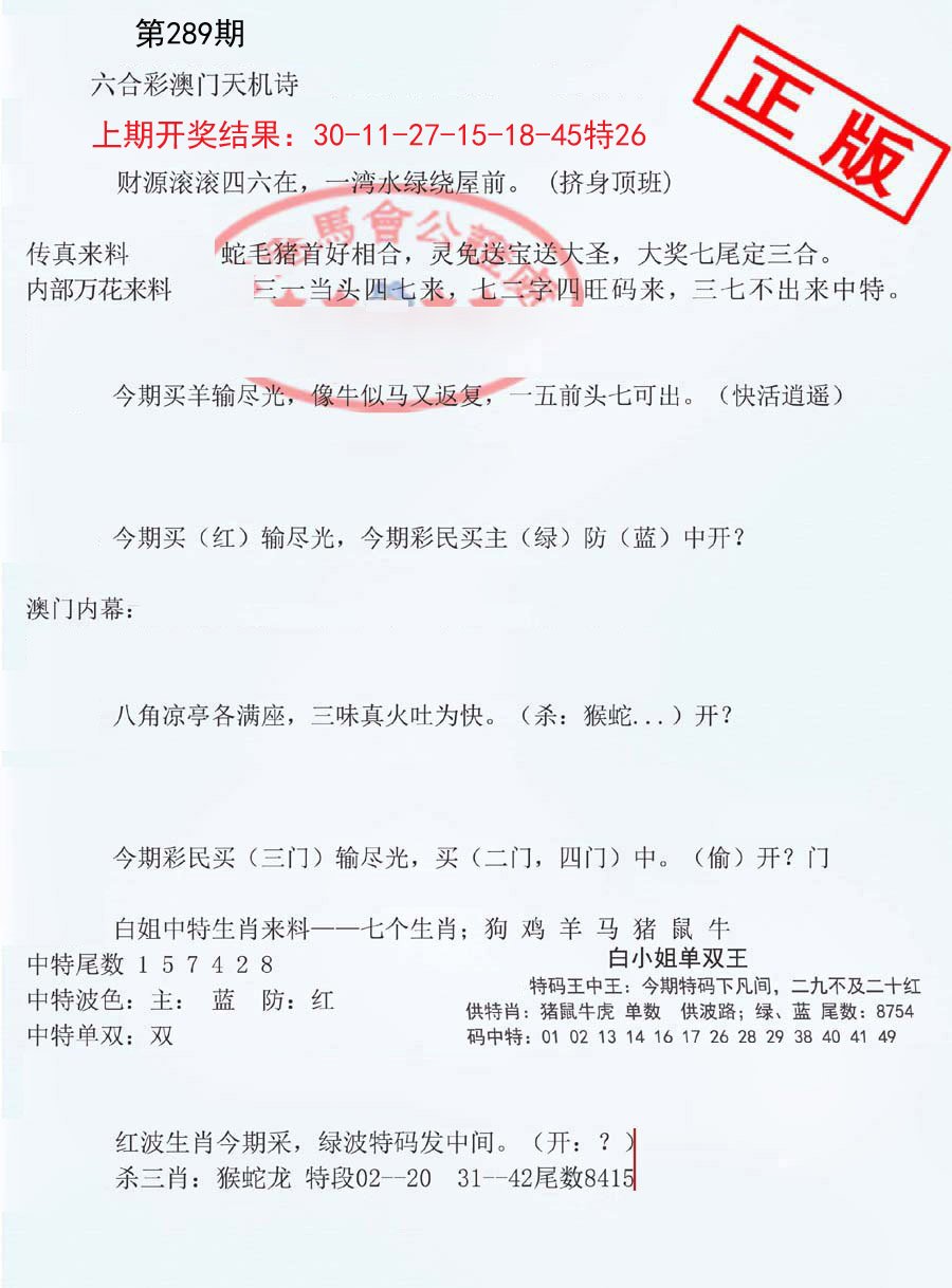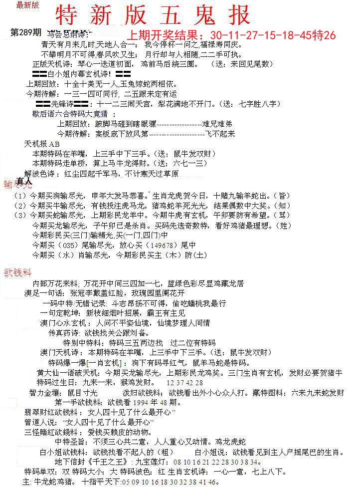 1279 周易预测报 1281 至尊报 1281 正宗国望诗 1283 正宗六合玄机料