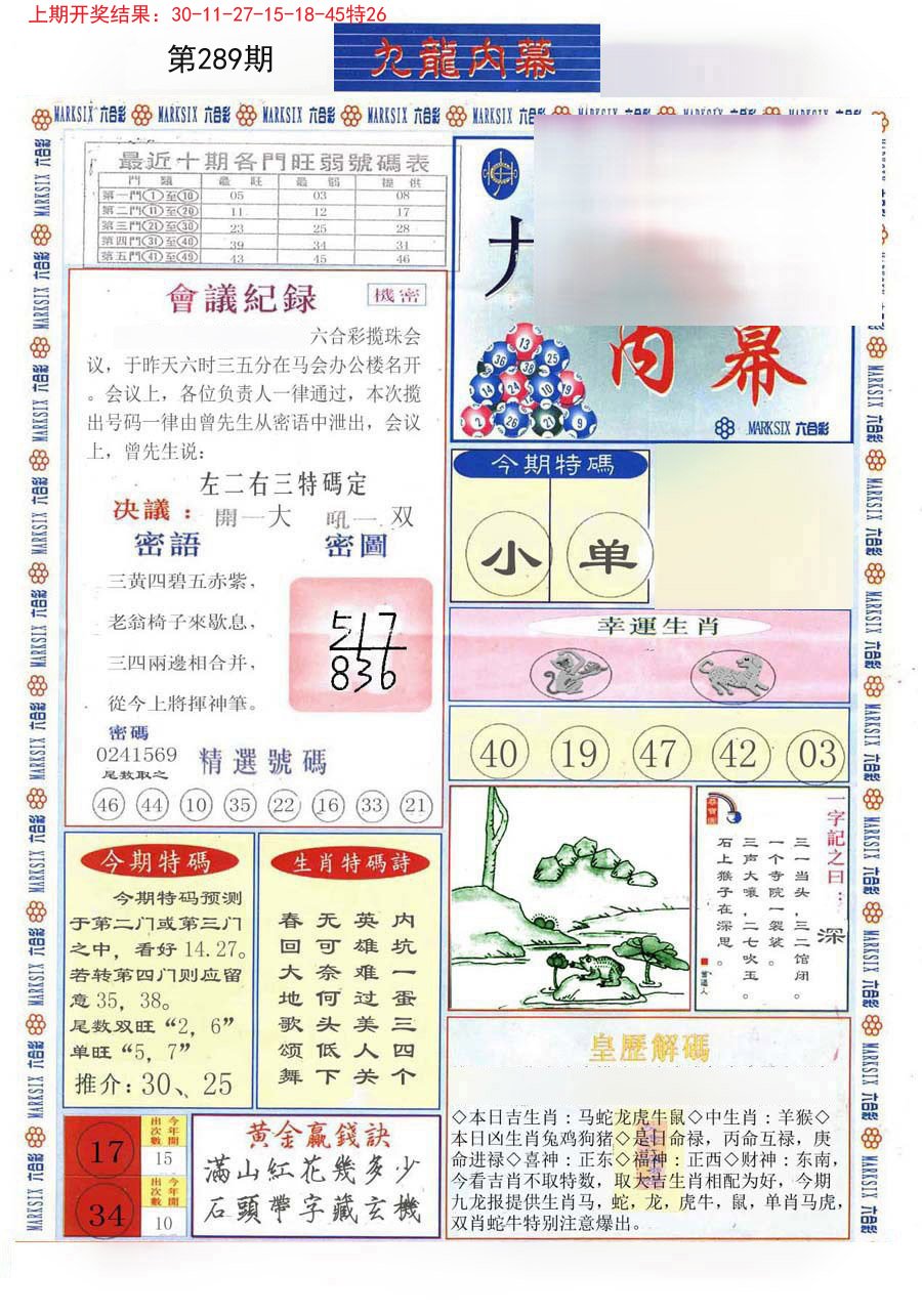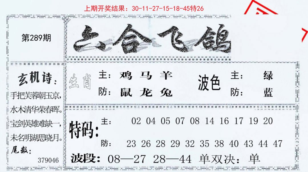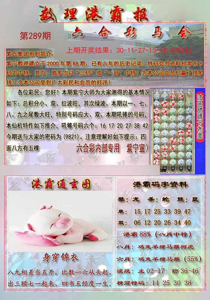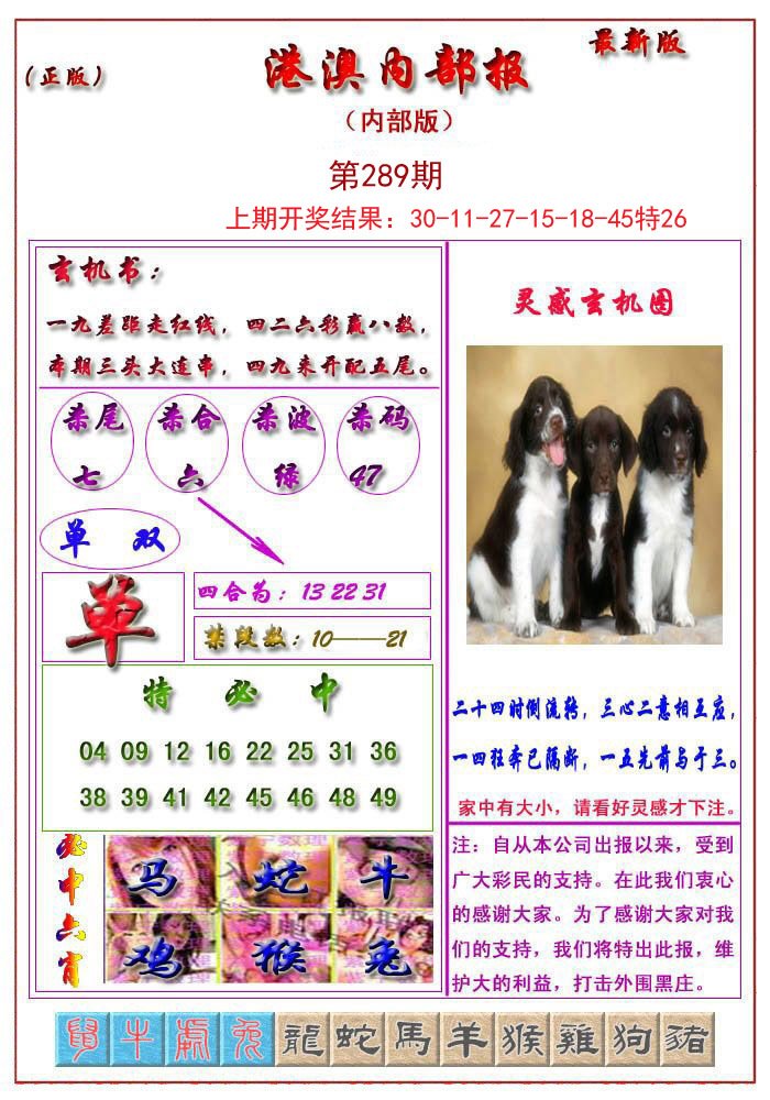 1279 周易预测报 1281 至尊报 1281 正宗国望诗 1283 正宗六合玄机料