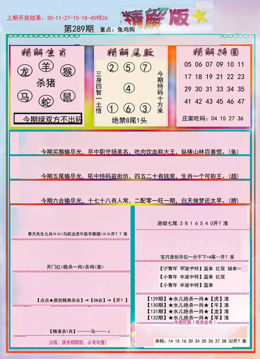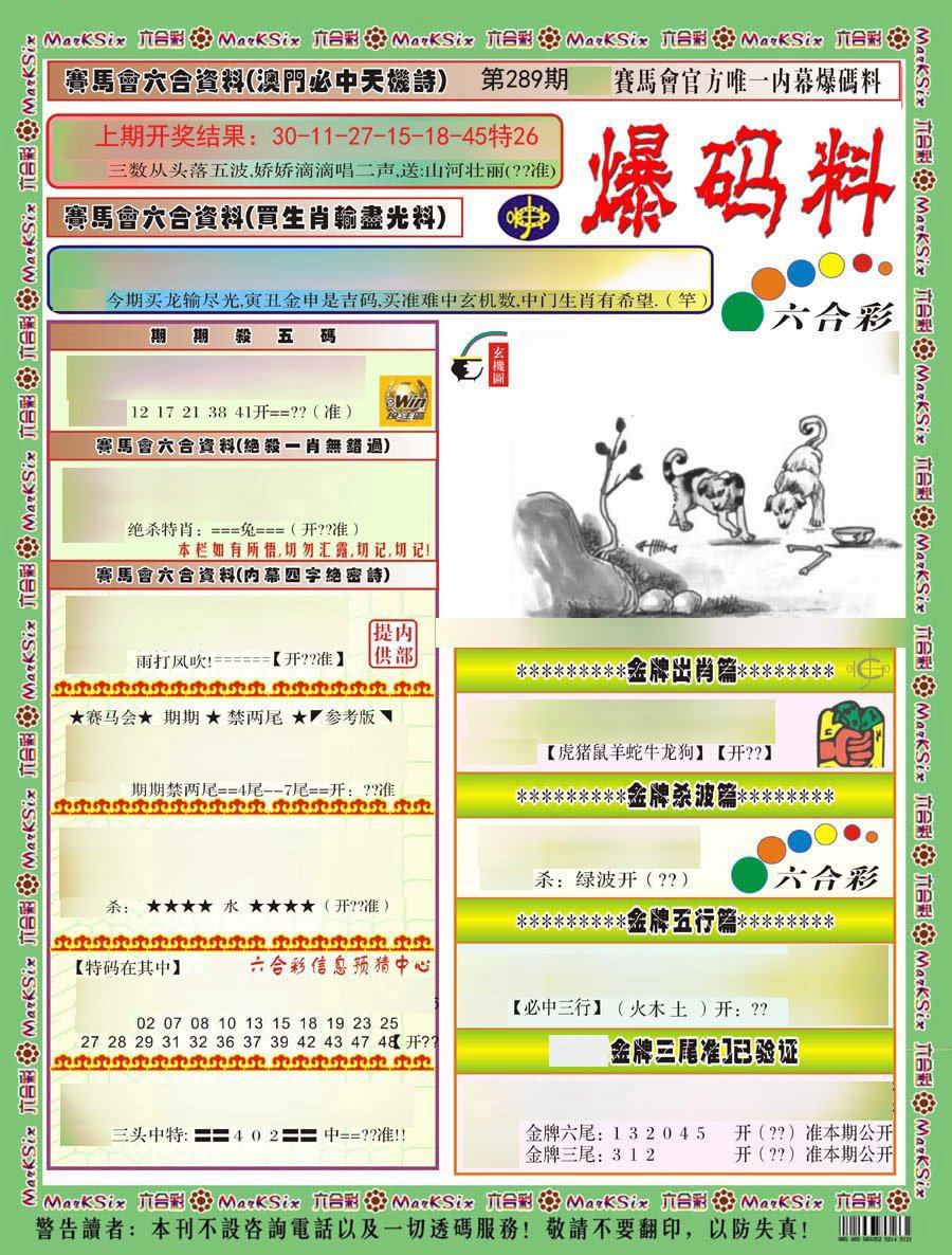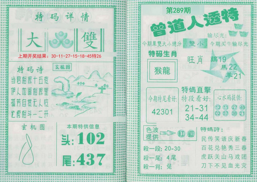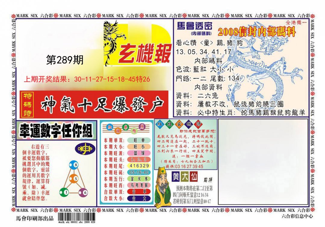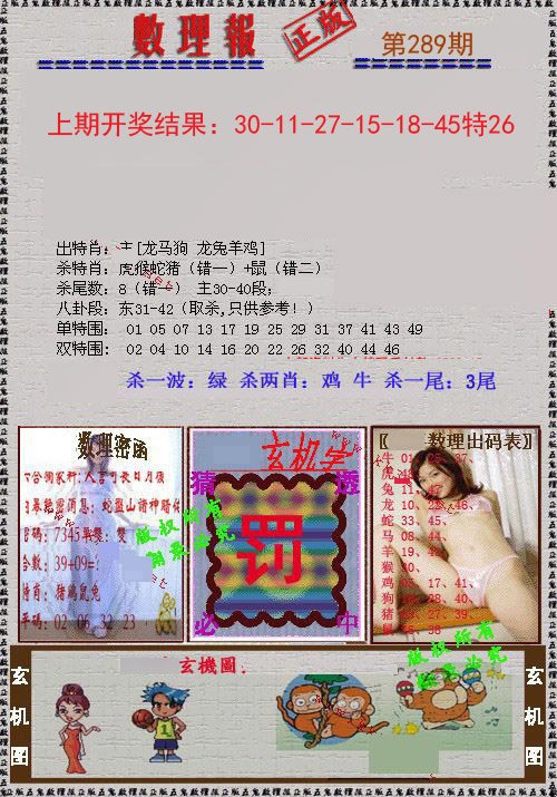 1304 《金钥匙导报》 1305 《曾道人攻略》 1306 12码特图 1307 18码中特图