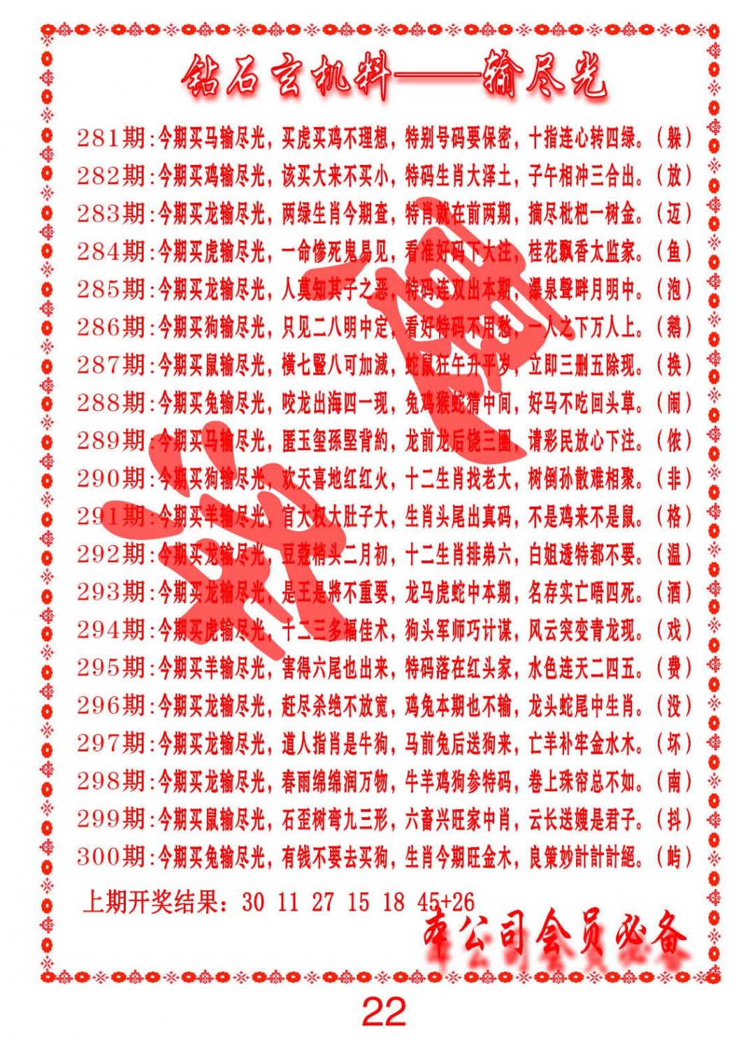1264 值日生肖 1265 捉生肖 1266 砖石玄机料 1267 钻石玄机诗-输光料