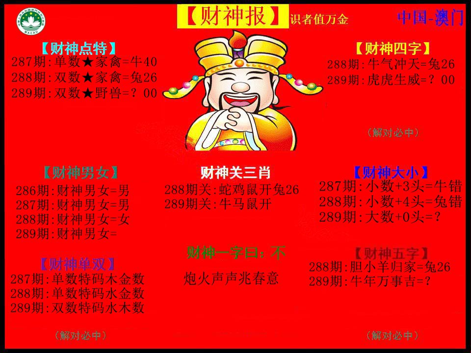267 彩色正版澳门老鼠报 268 财神指路A 269 财神指路B 270 财童送宝A