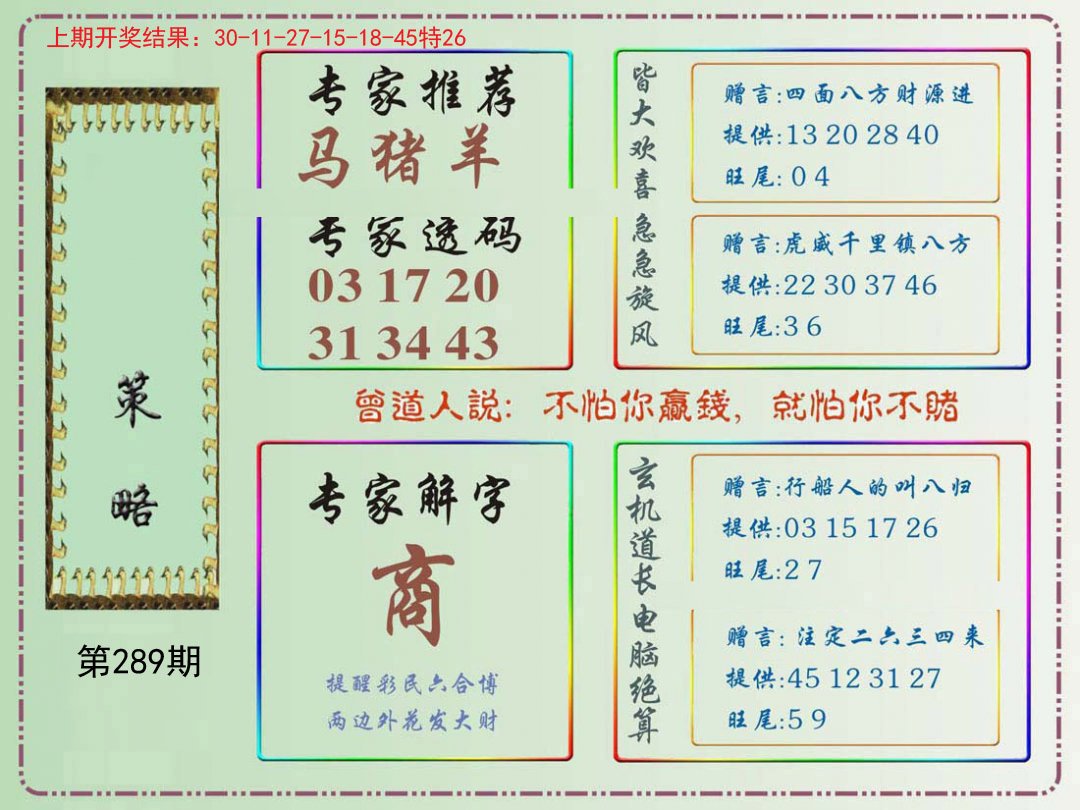 255 彩民之家 256 彩民之家A 257 财神报 258 财神到